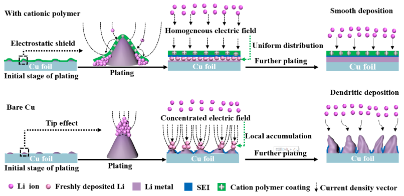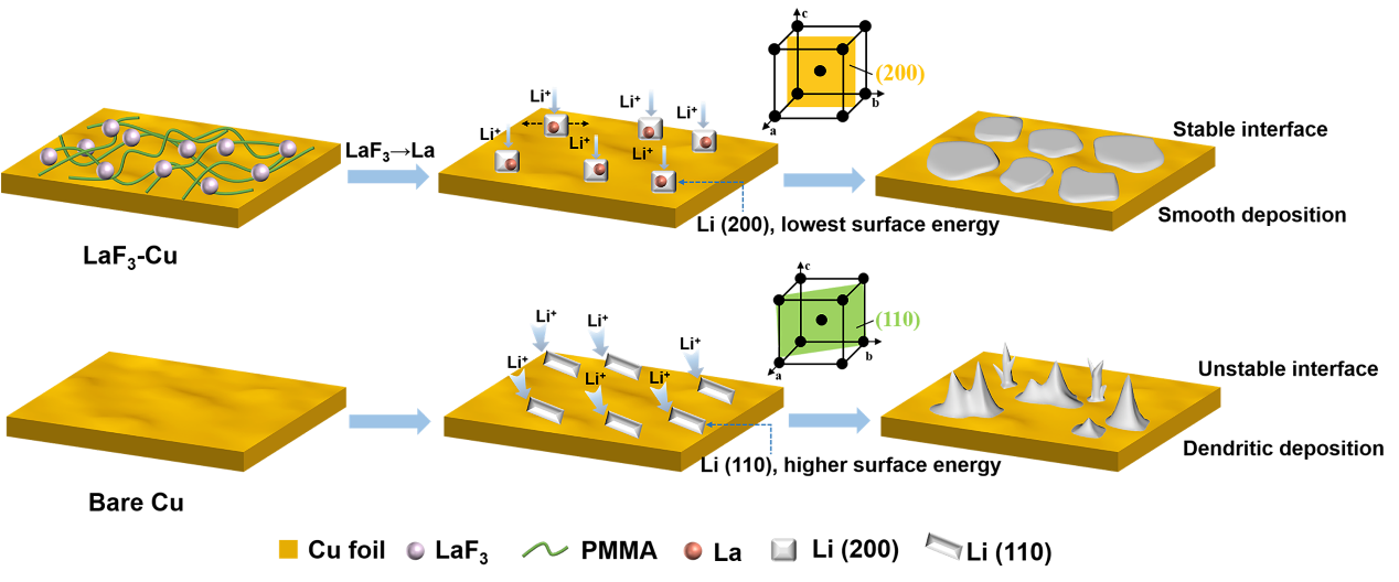 新型能源技术的有效开发和大规模应用将给全球能源格局带来巨大变革。《国家中长期科学和技术发展规划(2021-2035)》、《“十四五”能源领域科技创新规划》等文件指出储能技术作为能源革命的“最后一公里”,是解决制约清洁能源高效利用瓶颈问题的关键。以传统石墨负极为代表的锂离子电池的能量密度已经接近于理论极限(~250 Wh kg-1),无法进一步满足航空航天、新能源汽车、无人机等新兴领域对二次电池能量密度的需求。以锂金属为负极的新型储能电池理论能量密度远高于现有锂离子电池(>400Wh kg-1),被认为是新一代电化学储能技术,极具发展潜力。然而,不可控的锂枝晶生长和不稳定的锂金属/电解液界面严重阻碍了其实际应用。