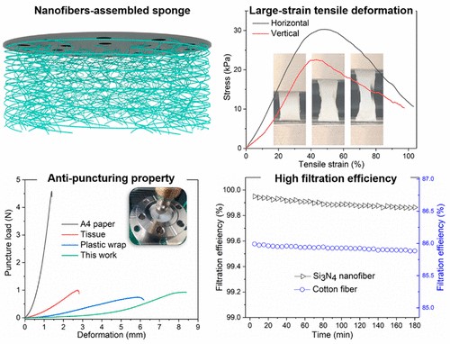 该研究成果以“Resilient and Antipuncturing Si3N4Nanofiber Sponge”为题发表于《Nano Letters》上。牵手
