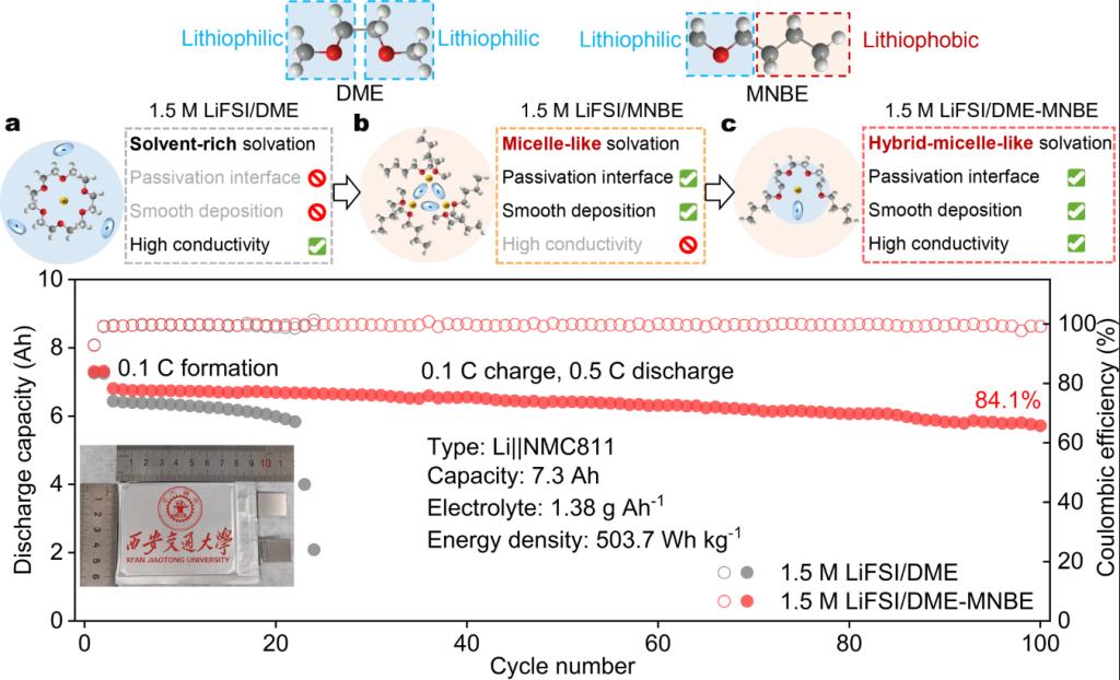 博士生赵培钰(已毕业)和张艳华为本文共同第一作者;以《用于超高能量密度锂金属电池的无氟类胶束状溶剂化电解质》(Non-fluorinated Electrolytes with Micelle-like Solvation for Ultrahigh Energy Density Lithium Metal Batteries) 为题发表在国际权威期刊《化学》(Chem) 上,牵手