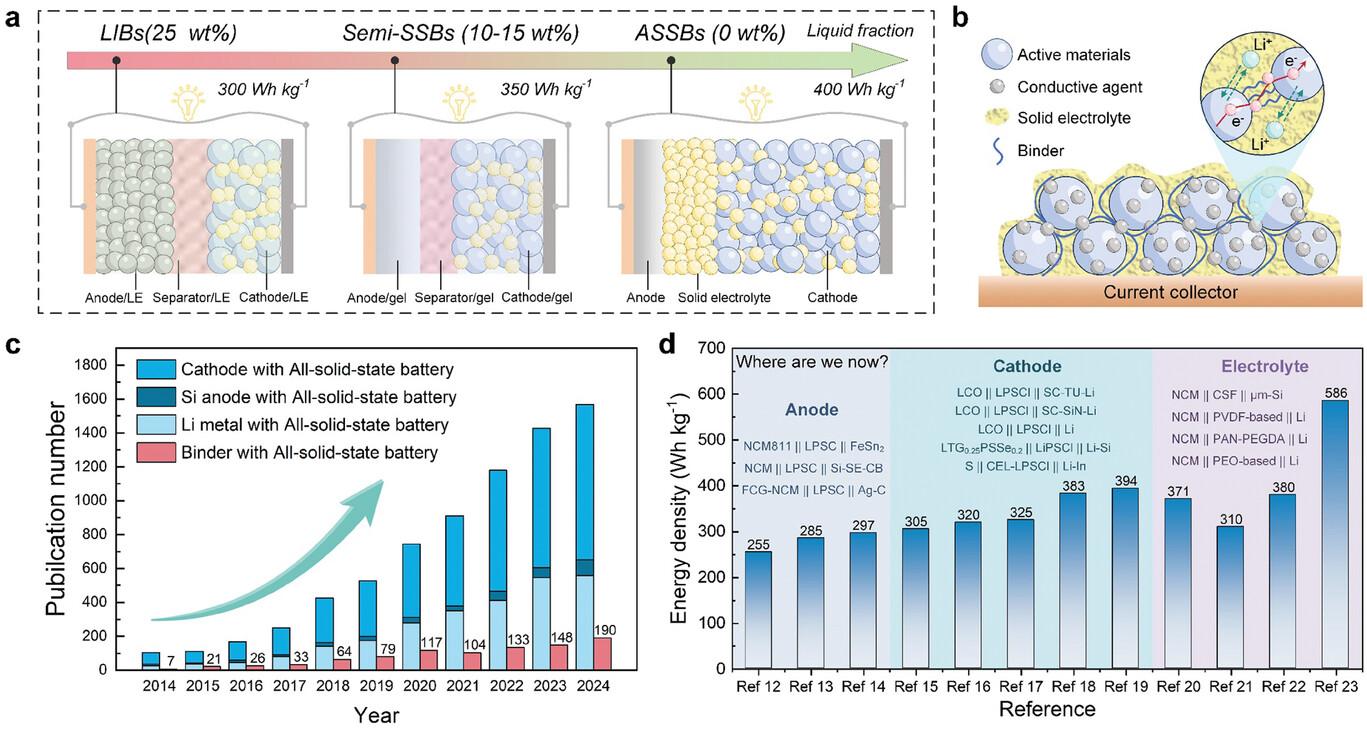 功能化粘结剂的开发对于上述全固态电池的开发也发挥着关键作用。近年来,宋江选教授团队围绕功能聚合物粘结剂分子设计开展了系统研究,提出并开发了离子-电子双导型、应力耗散型等新型粘结剂体系,近期受邀在国际知名期刊《先进材料》(Advanced Materials)上发表了题为《面向实际应用全固态电池的功能粘合剂现状》(Toward Practical All-Solid-State Batteries: Current Status of Functional Binders)的综述文章。该综述系统总结了高比能全固态电池中硅基负极、复合正极和固体电解质用粘结剂的设计原则,并针对各个部分提出了潜在挑战的解决策略。牵手