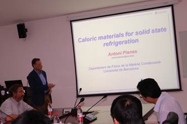 报告中,Antoni Planes教授首先介绍了固态制冷技术的物理机制和热力学基础,并展示了该技术在制冷工程应用中的重要价值。随后他介绍了基于固态相变的新型换热材料领域最新研究进展,指出了固态相变附近潜在的巨大换热效应,并就影响换热效应的核心因素展开了讨论。他以几种最新研究发现的先进换热材料为例详细介绍了所采用的实验测试手段以及相关的物理学理论,从事相关领域研究的老师同学获益匪浅。