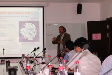 报告中,Eduard Vives教授首先介绍了采用声发射法监测多孔材料压缩变形过程中的雪崩效应,并指出这种雪崩效应的物理机制等价于地震学中的Gutenberg-Richter原理,因此被称为“实验室地震”。随后,基于地震与雪崩效应的物理平行性着重介绍了解释余震现象的Omori’s关系及Productivity 关系,并指出这些关系背后的物理本源是单个雪崩效应之间的时间相关性,且与压缩速率及数据采集周期无关。随后,他展示了雪崩效应的动力学统计结果,并指出这一结果与真实的地震动力学统计结果完成重合。接着Eduard Vives教授介绍了他课题组最新的实验方法和研究结果,并就与会老师同学关心的雪崩效应相关的测试方法以及统计学理论方面的问题进行详细的解答。