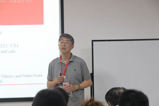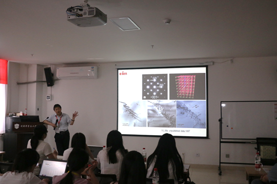 仲英楼(新材料大楼)成功举行。来自日立高科技公司的章效锋博士、中科院金属研究所的马秀良研究员和内布拉斯加大学李兴中博士分别做了题为为“电子显微漫谈”、“电子衍射与物相分析实验案例”以及“电子衍射模拟与晶体学分析Landyne软件包介绍”的报告。