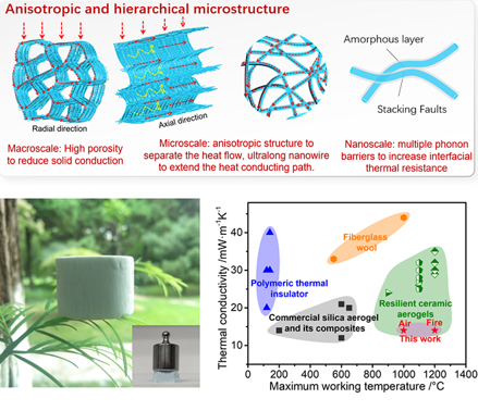 06-28高效隔热材料的力学性能、热稳定性和化学稳定性是保证其安全应用的关键。与传统隔热材料相比,陶瓷气凝胶的低导热系数和优异的化学稳定性(如耐火和耐腐蚀性能等)赋予了其明显的优势。但是,传统陶瓷气凝胶一般由氧化物纳米颗粒组成,其脆性和高温下的结构坍塌限制了其实际应用。近年来,以柔而韧的陶瓷纳米结构构筑陶瓷气凝胶材料,实现了陶瓷气凝胶从脆性向弹性的转变。但这类材料一般具有随机分布的气孔结构,通常表现出较...
