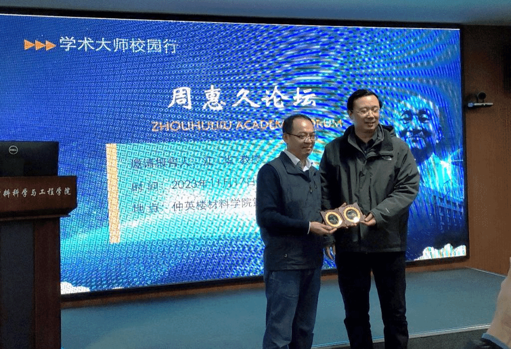最后,丁向东院长为其颁发“周惠久论坛讲座奖”荣誉证书。丁院长表示希望今后与江华教授有更多深入交流的机会,相互促进,共同提高材料研发水平,为中国的材料化学事业添砖加瓦。
